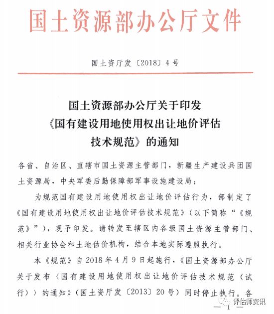 國有建設(shè)用地使用權(quán)出讓地價評估技術(shù)規(guī)范 | 國土資廳發(fā)(2018)4號