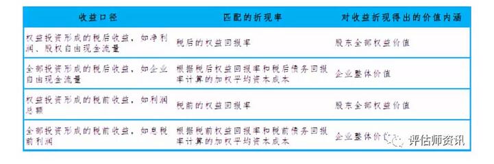 折現率是將未來預期收益折算成現值的比率,是與企業未來收益風險程度相對應的期望報酬率,折現率的選取需與相應收益的口徑相匹配。