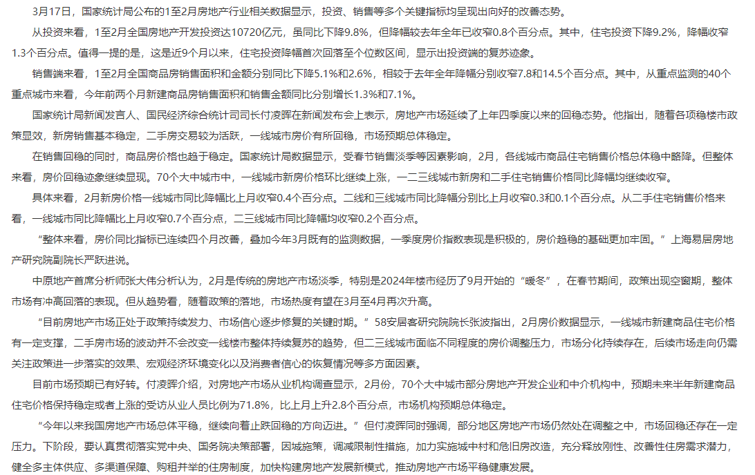 多項指標好轉 房地產市場延續回穩態勢