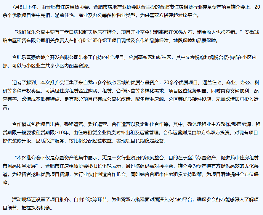 20余個(gè)優(yōu)質(zhì)項(xiàng)目集中亮相!合肥舉行住房租賃行業(yè)存量資產(chǎn)項(xiàng)目推介會(huì)